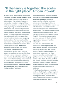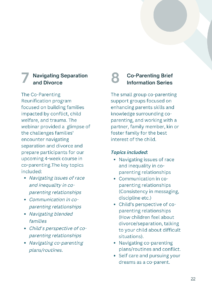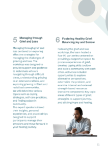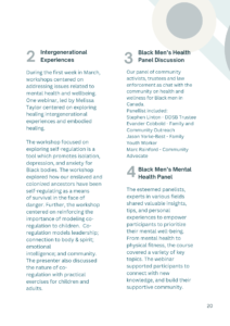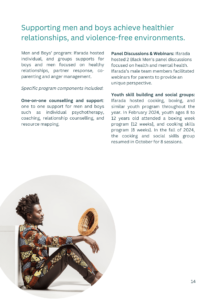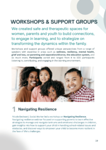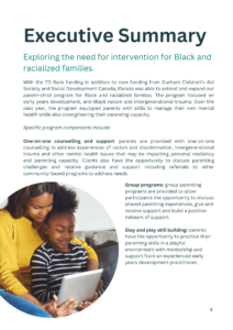 - Centering Fatherhood: The program focused on creating safe spaces for explore and examine strengthening their role in their family, and healing through their experiences of trauma and anti-Black racism. Programming centered on warm spaces for Black and racialized boys, panel conversations with Black leaders, and one to one intervention within the family systems.